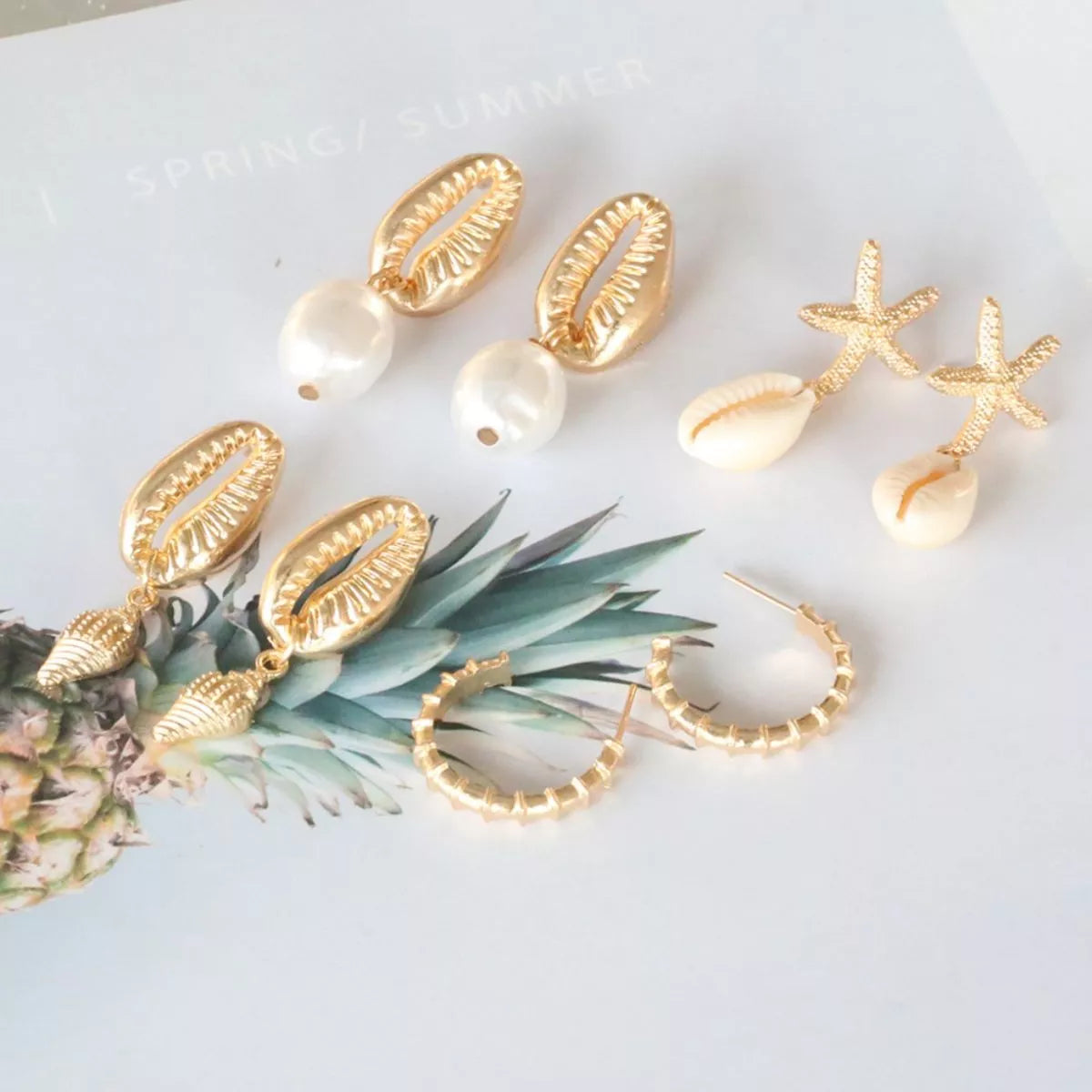 4 Pair 18K Gold-Plated Shell Minimalist Earrings