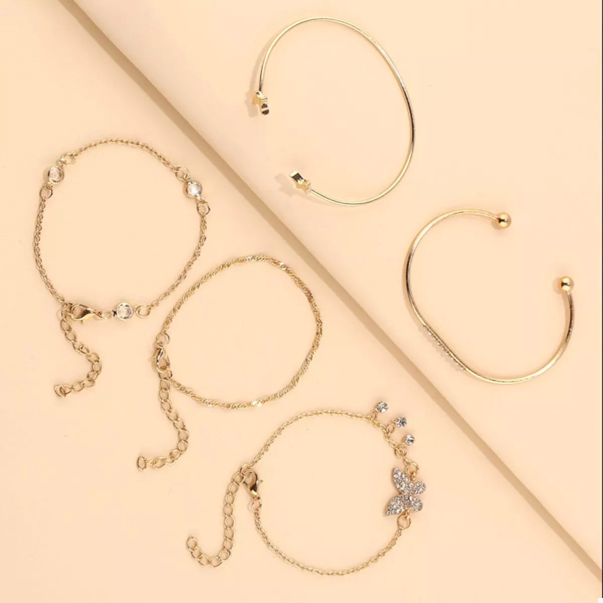 5 Piece 18K Gold-Plated Butterfly Bracelet