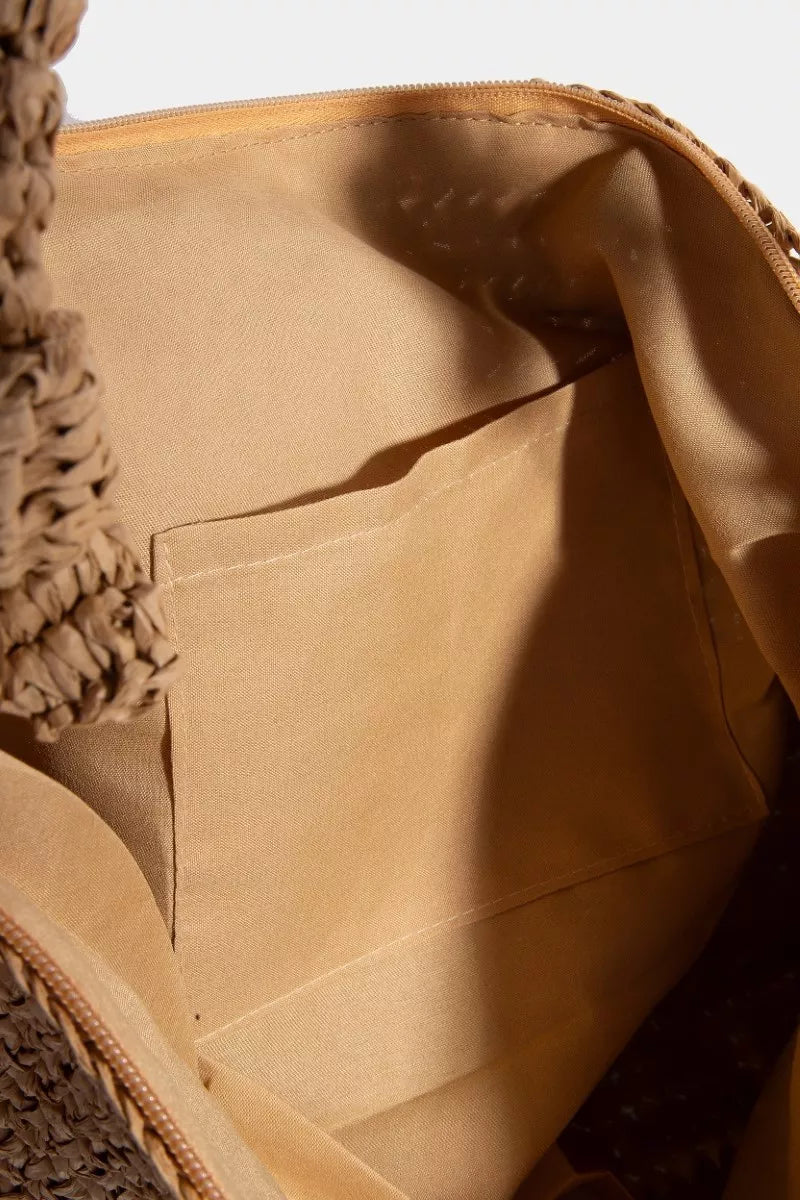 Fame Braided Handle Rectangular Straw Hand Bag